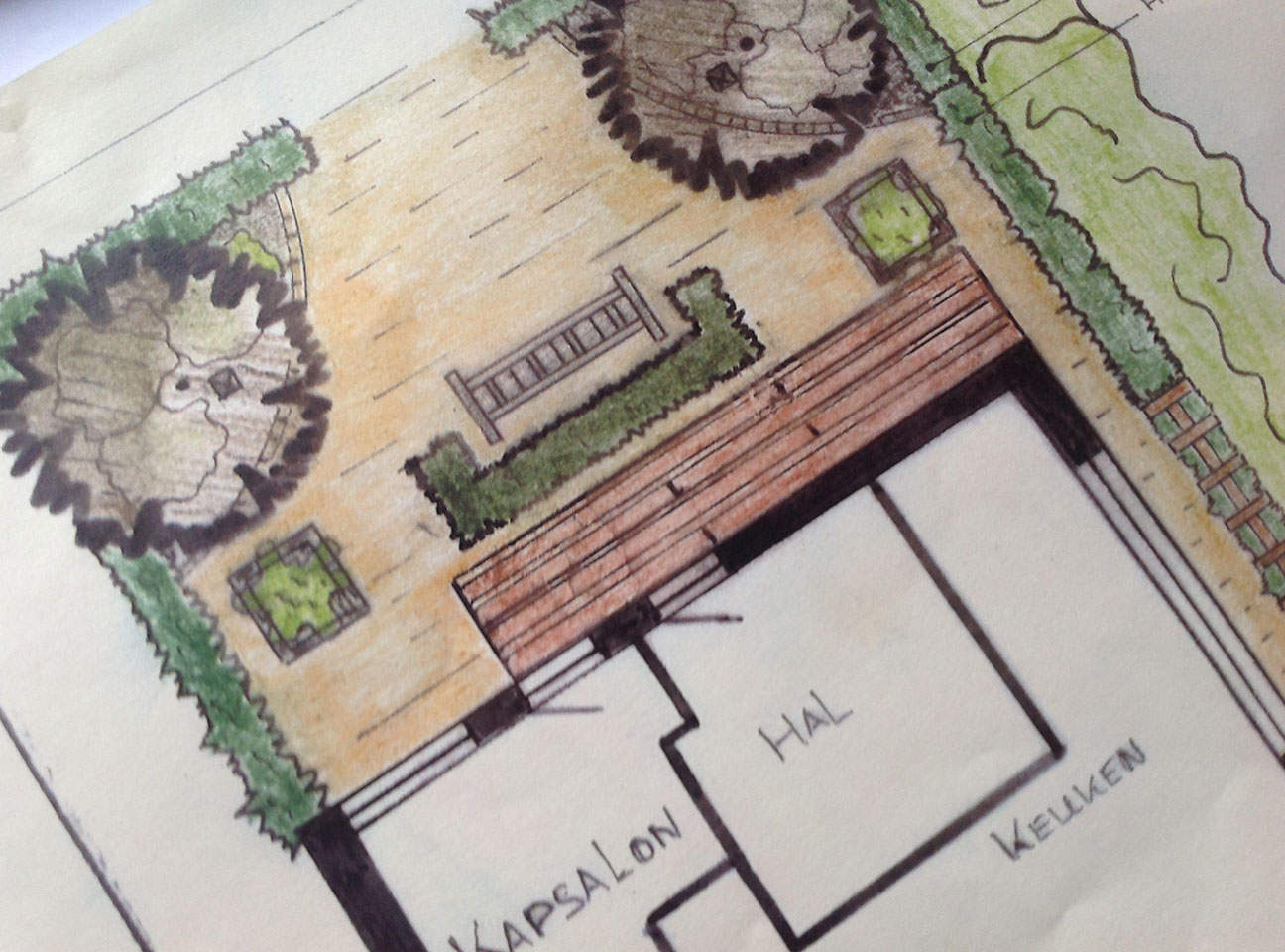 Een mooie tuin begint bij een goed ontwerp. Hoveniersbedrijf Marco van der Kreke gaat met uw wensen en ideeën aan de slag om een ontwerp van uw toekomstige tuin te maken. In een persoonlijk gesprek bij u thuis of op het bedrijf bespreken we uw wensen en bekijken we de mogelijkheden ter plekke. Wij leveren deskundig advies over uw situatie en werken de ideeën uit in een tuin ontwerp en bijpassend beplantingsplan. Waarin een maten -en verhouding plan tot de mogelijkheden behoord.